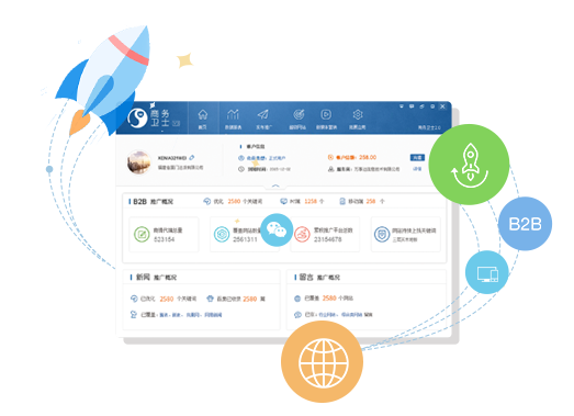 通過258集團旗下超過18種云客戶端,配合調度系統有序的分配、調度、傳輸、接收和執行,將企業的B2B信息瞬間發布到上萬個商貿平臺,實現企業信息的海量覆蓋和全網傳播。